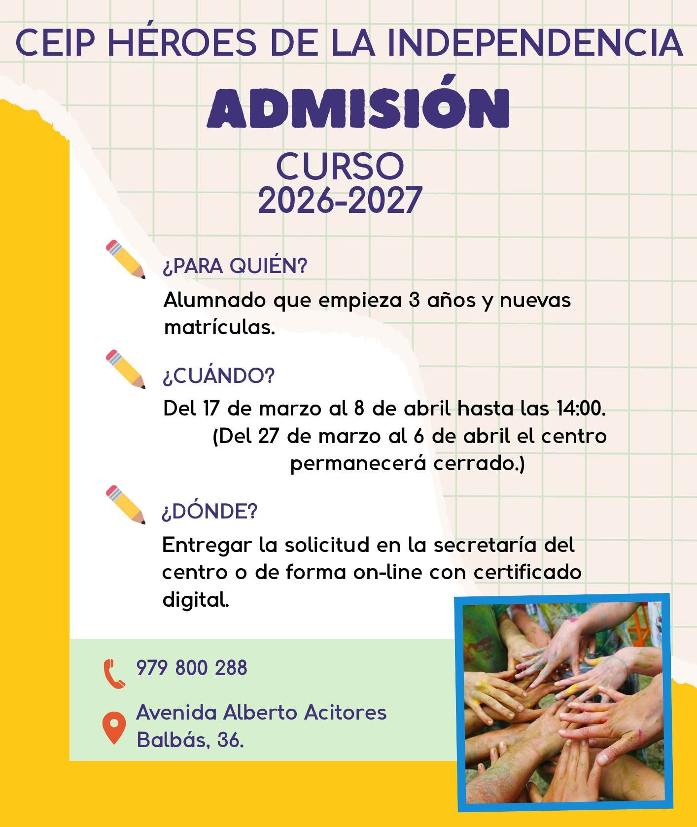 ADMISIÓN DE NUEVO ALUMNADO (del 14 al 31 de marzo)